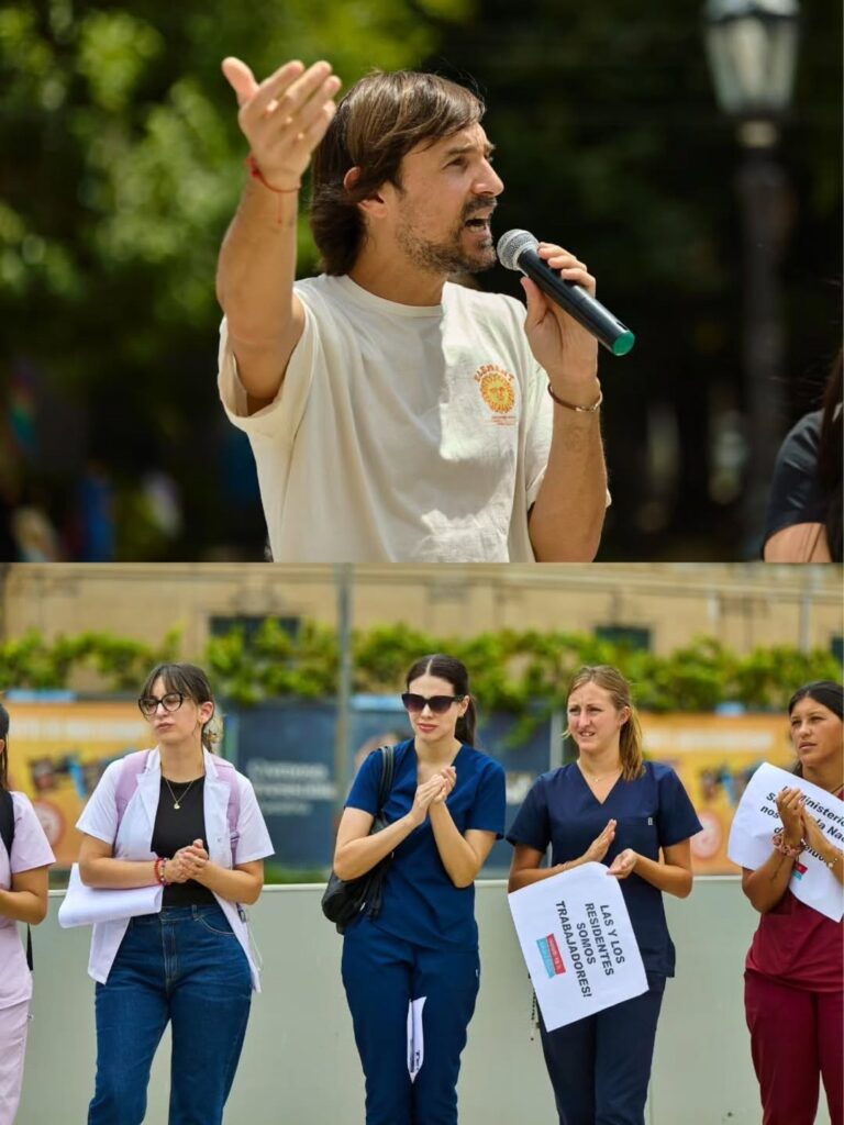 📢 En el día de hoy acompañamos a residentes de todos los efectores provinciales en la puerta del Hospital Centenario en reclamo del pago de 4 meses de deuda (desde septiembre a diciembre) que el ministerio de salud de la nación tiene sobre estos profesionales.