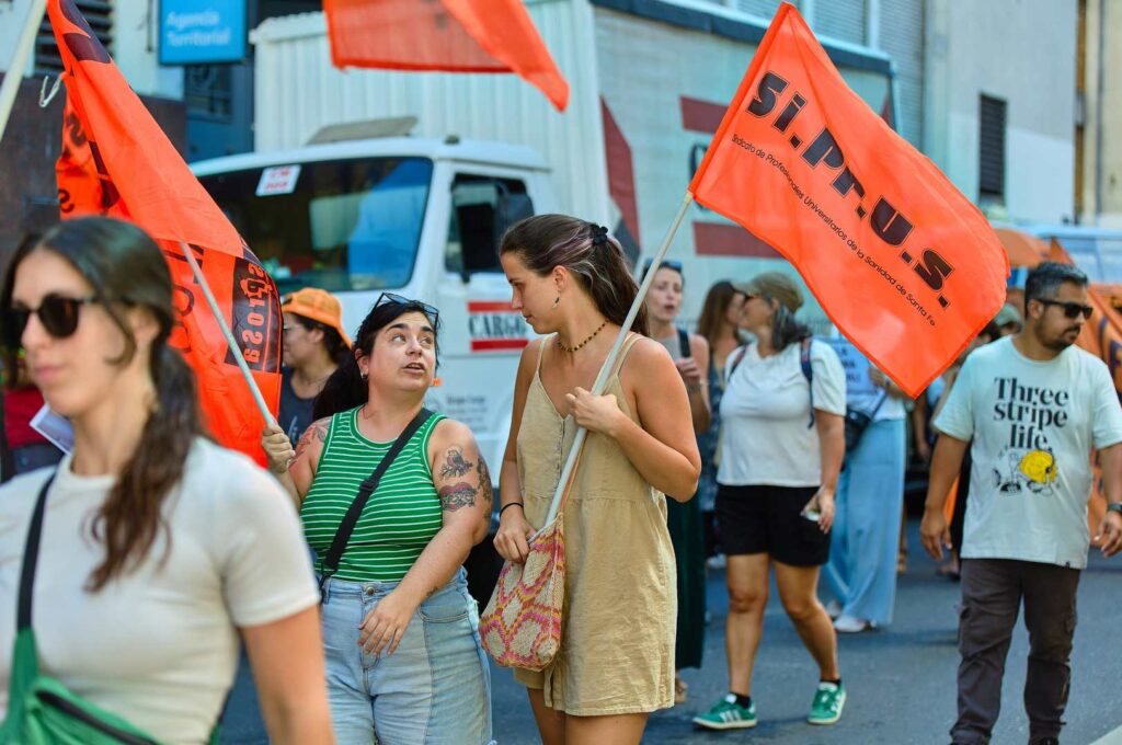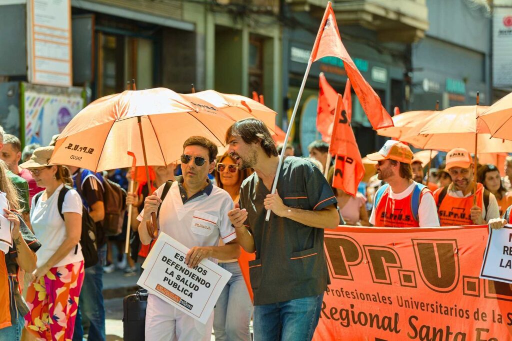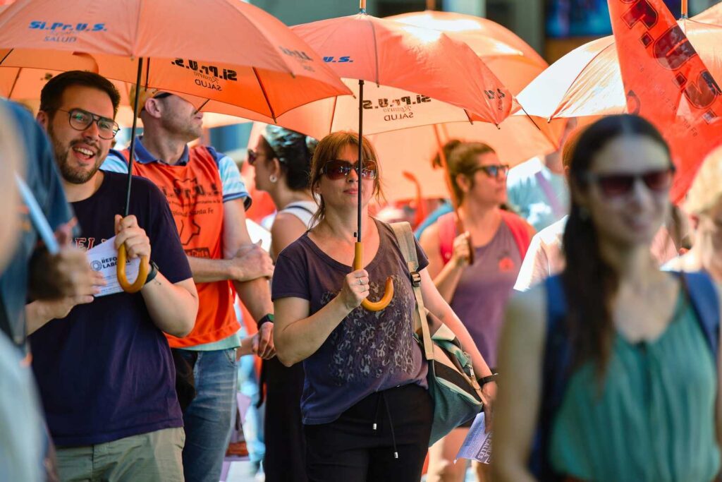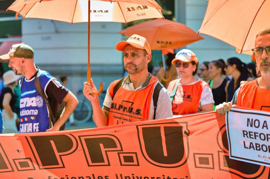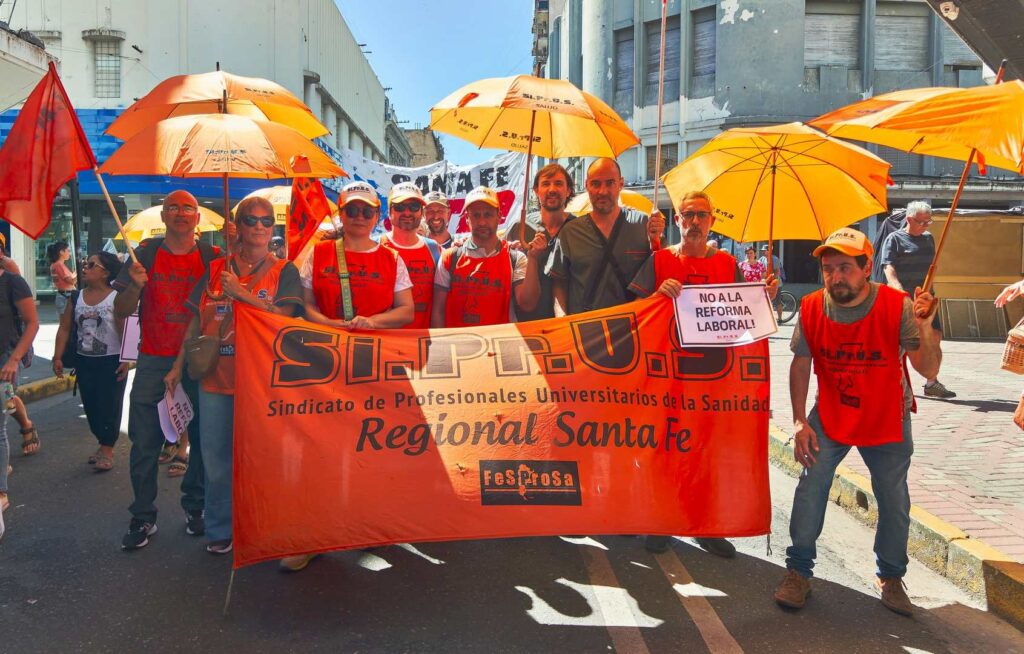 Movilización nacional en la ciudad de Rosario, junto a gremios, federaciones, centrales y movimientos sociales en defensa del trabajo, el salario y la salud pública y en rechazo a la reforma laboral.